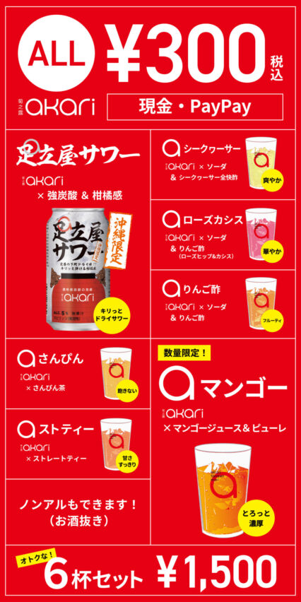 コラボ商品"足立屋サワー"と一緒に、足立屋の自慢の料理をお楽しみください♪