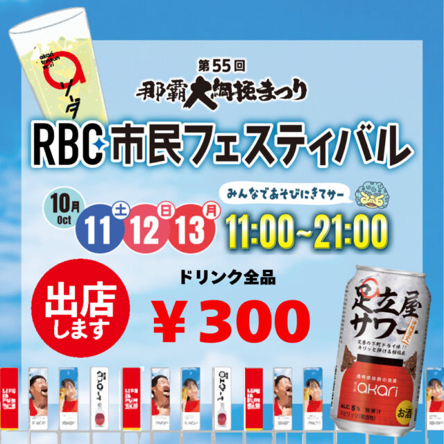 昨年に続き、今年も"那覇大綱挽まつり RBC市民フェスティバル"に出店します!